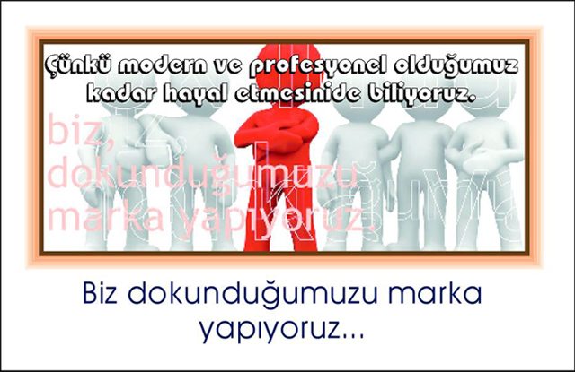 Bundan dolayı firmanıza ait ürünlerinizin üzerine markalamayı, lazer, tampon ve serigraf baskı ile firmamızda yaptırabilirsiniz.